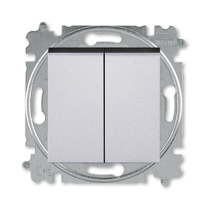 Выключатель кнопочный двухклавишный ABB Levit, 10 А, серебро-дымчатый чёрный 2CHH598745A6070